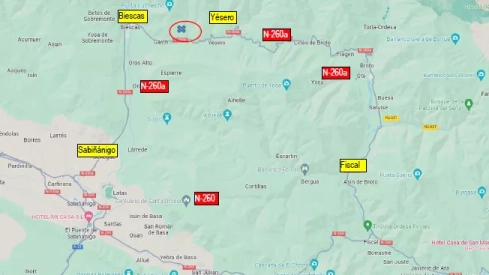 Durante este corte, se plantea como itinerario alternativo la N-260a Yésero-Fiscal, N-260 Fiscal-Sabiñánigo y N-260a Sabiñánigo-Biescas.