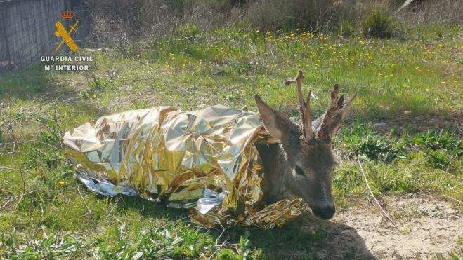 Agentes de la Guardia Civil de Barbastro han rescatado de las aguas del Canal del Cinca a un corzo que había caído en su interior y se encontraba en las inmediaciones de una compuerta que estaba a punto de arrastrarlo.