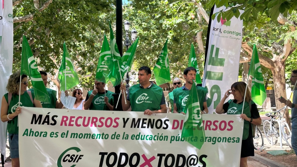 La Central Sindical Independiente y de Funcionarios (CSIF) ha convocado una concentración en Huesca para exigir al Departamento de Educación de Aragón la modificación de las instrucciones de cupo que, según el sindicato, no han sido negociadas y representan un ataque al sistema educativo. La manifestación forma parte de una movilización más amplia que también ha tenido lugar en las otras provincias de la comunidad autónoma.