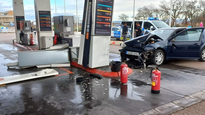 Debido al impacto contra el surtidor, ha comenzado a brotar abundante combustible del dispensador, que, también por suerte, es de aditivos para vehículos diésel que no es inflamable y tampoco estaba repostando nadie en ese momento. De la gasolinera también ha roto un embellecedor.