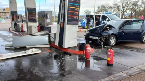 El suceso se ha producido este miércoles, en la estación de servicio ubicada en la avenida Martínez de Velasco, junto a la ITV, posiblemente por un exceso de velocidad, según apuntan fuentes de la investigación.