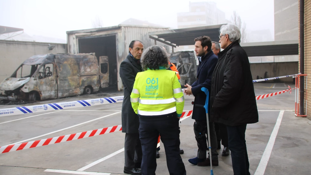 El consejero de Sanidad del Gobierno aragonés, José Luis Bancalero Flores, ha visitado este lunes el centro de salud de Monzón rural, Monzón urbano y la base operativa del 061 en cuyo aparcamiento ardieron la madrugada del pasado sábado dos ambulancias y un vehículo con el que los profesionales sanitarios realizan los avisos a domicilio del área Monzón rural, provocando daños materiales por valor de medio millón de euros. Tanto el 061 como el Servicio Aragonés de Salud han presentado denuncia por estos hechos.