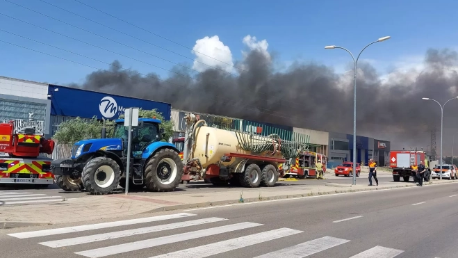 También ha acudido la alcaldesa de la ciudad, Lorena Orduna, los concejales José Miguel Veintemilla y Belén Almudévar, así como propietarios de las naves y el presidente de la Federación de Polígonos Industriales de Huesca, Carlos Serrano. Desde Siétamo, han llegado los hermanos Almudévar con dos cubas de agua.