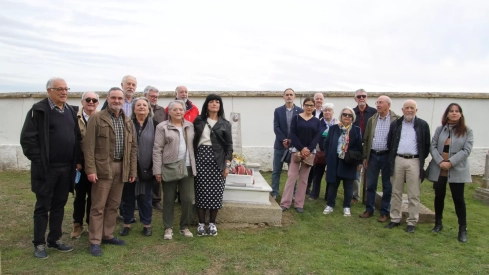 Una veintena de personas, representantes del PSOE y UGT, se ha concentrado este sábado 1 de noviembre en el cementerio sito en el parque Mártires de la Libertad para rendir íntimo homenaje a Martín Ainsa Pinal, personaje destacado en la historia del socialismo oscense. Ha presentado a los intervinientes y coordinado el acto el exconcejal Domingo Malo.