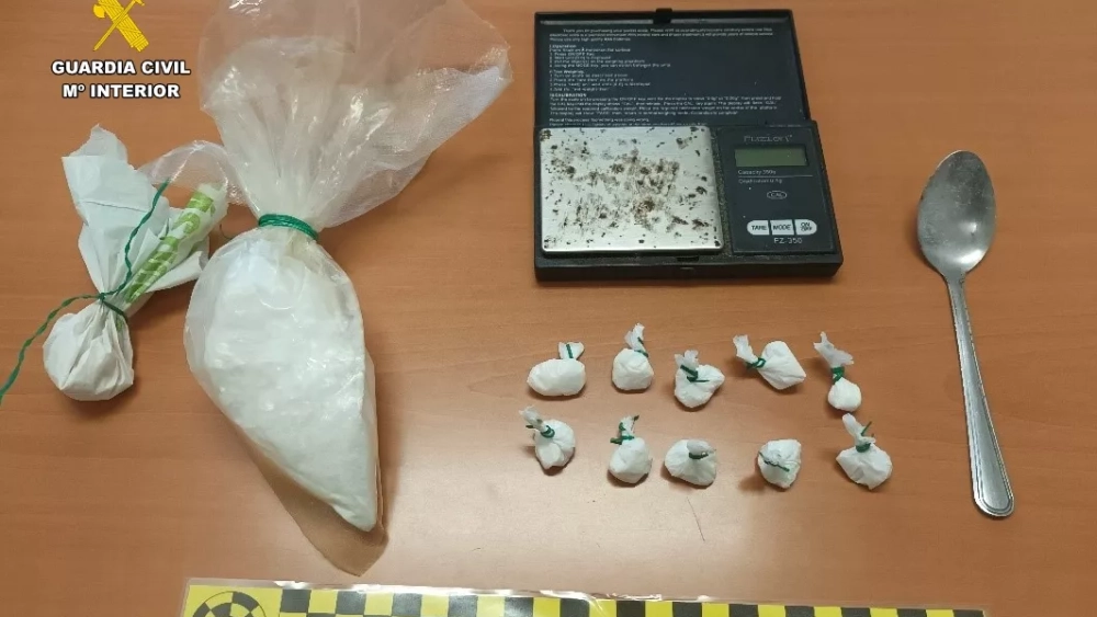 Con el apoyo del Grupo Cinológico de la Comandancia de Huesca, finalmente, el 23 de enero, el operativo se materializó con la detención de un vecino de Fraga, de 36 años, como presunto autor de un delito contra la salud pública, y se intervinieron 18 gramos de cocaína, 73 gramos de hachís, una báscula de precisión, así como elementos de preparación de las dosis y 950 euros en efectivo.
