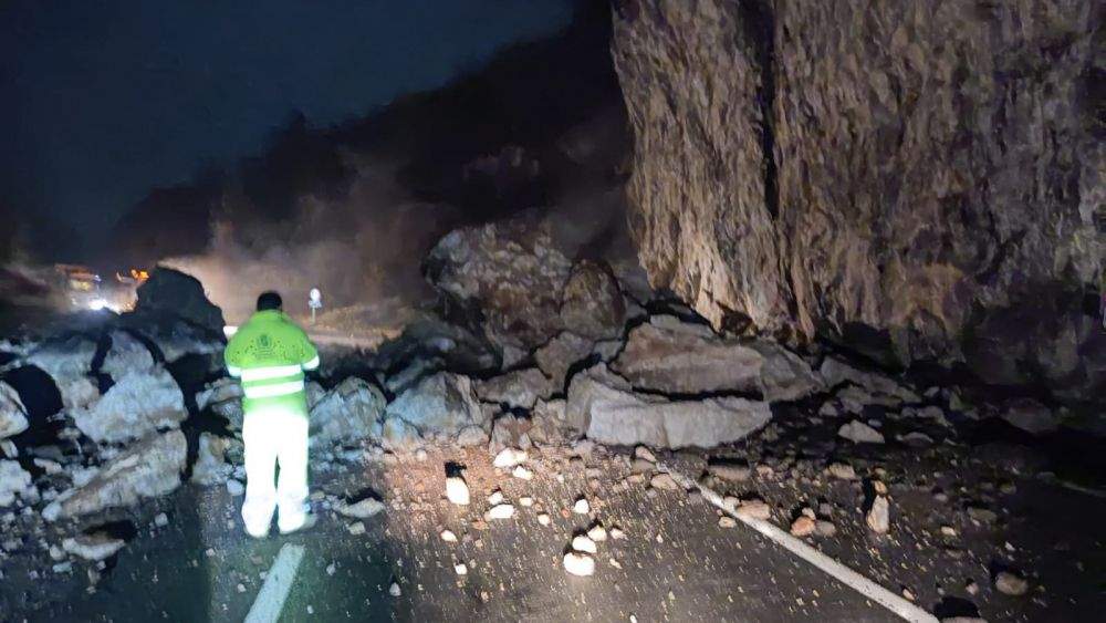 En la zona se trabaja desde el mediodía para picar las grandes rocas que cubrían al completo la calzada para despejarla al tráfico a lo largo de esta mañana. A las 13.40 se ha podido abrir uno de los carriles para dar paso alternativo a los vehículos, y se continúa con las labores de limpieza.