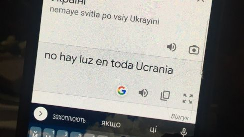 Irina no entiende la pregunta… los coches siguen su marcha, la gente está caminando, pero no habla. Respondo para mis adentros: rezar… Hoy han vuelto a atacar Jersón 12 días después de recuperarla, también han atacado Kiev, Donetsk y otras ciudades más. Nosotros estamos bien. 14:48 h., “No hay la luz en toda Ucrania…”.