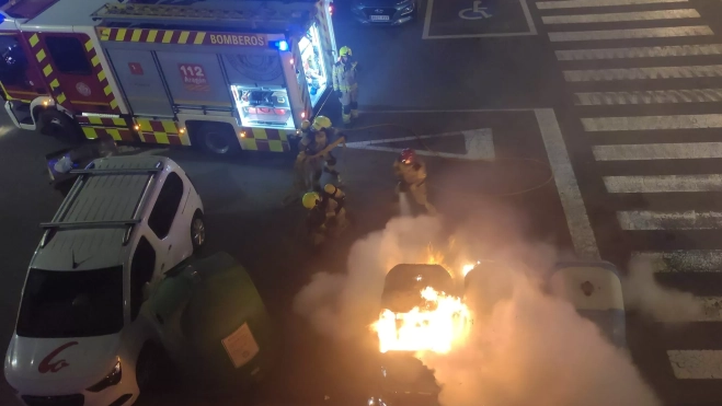 A las 3:10 horas, la Policía Local ha dado aviso a bomberos de otro contenedor que ardía en la calle San Jorge, 58, y a las 3:30 horas, nuevamente, Policía Local alertaba de un coche en llamas en General Lasheras (enfrente del Bocatín). Se han