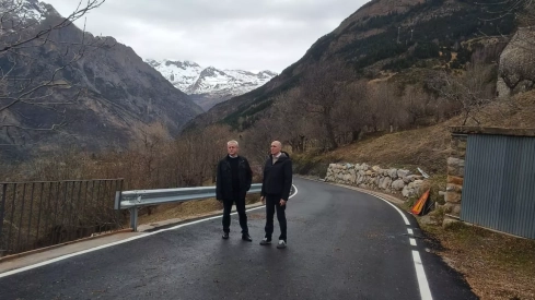 El diputado de Obras de la DPH, Álvaro Bescós, y el alcalde de Benasque, Manuel Mora, han visitado la calle Cabo del Llugá en la que la institución provincial ha invertido 700.000 euros.