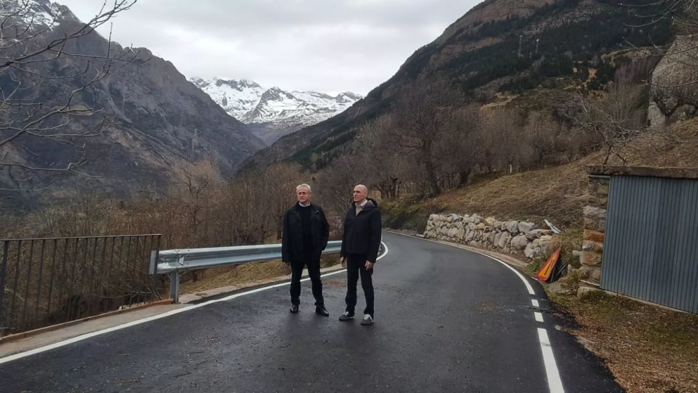 El diputado de Obras de la Diputación Provincial Huesca, Álvaro Bescós, y el alcalde de Benasque, Manuel Mora, han visitado la calle Cabo del Llugá en la que la institución provincial ha invertido 700.000 euros.