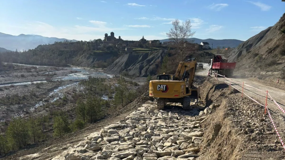 La Diputación Provincial de Huesca está trabajando ya en el acceso a Bergua desde la N-260 para solventar el desprendimiento que se produjo la madrugada del pasado 20 de enero y que llegó a cortar la carretera. Tras el incidente, el departamento de Obras activó actuaciones inmediatas como despejar de calzada para poder abrirla solo para residentes. En estos momentos se está realizando una intervención de casi 300.000 euros para evitar que la inestabilidad de ese talud progrese. Entre otros trabajos, se han realizado acciones para hacer caer los materiales más peligrosos y se ha proyectado e instalado cables y bulones para asegurar la ladera.