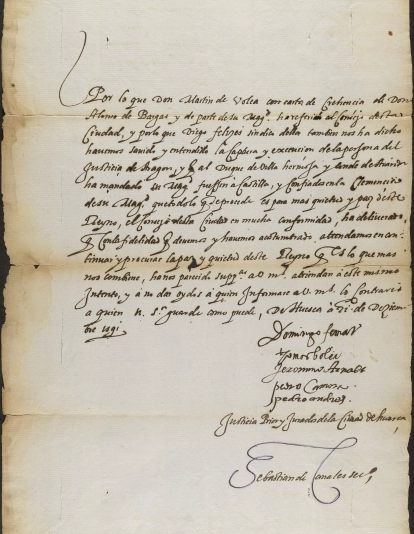 En el documento se dan instrucciones a la ciudad de Bolea e indica: “Atendamos en continuar y procurar la paz y quietud de este reino que es lo que más nos conviene” y a “no dar oídos a quien informare a vuestras mercedes lo contrario”.