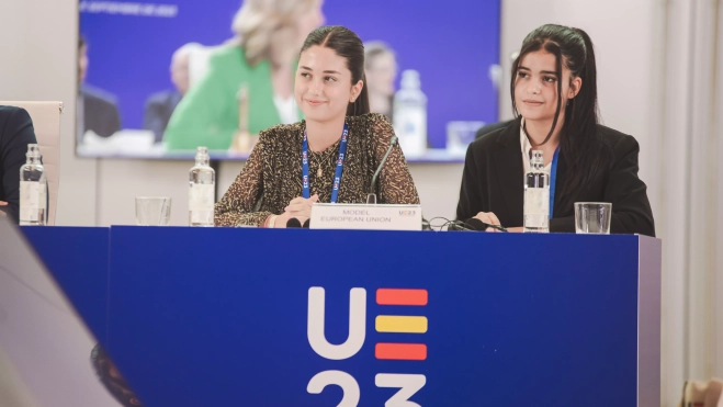 El alumnado, adoptando el rol de los ministros de Educación de la UE, ha debatido sobre "Digitalización en la escuela", "La escuela del futuro" y "Vocaciones STEM en las chicas. Valores comunes y ciudadanía democrática". Una experiencia calificada de “muy enriquecedora”.