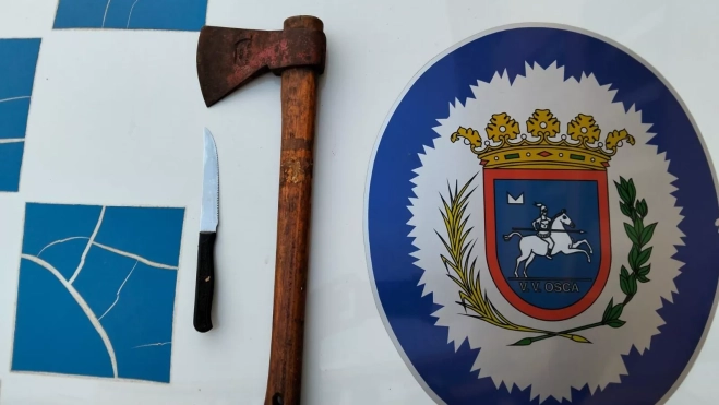 La Policía Local de Huesca ha detenido esta madrugada a dos personas tras una agresión con un hacha y un cuchillo de cocina ocurrida en la calle Padre Huesca, en una actuación que permitió localizar y detener a los sospechosos pocos minutos después de los hechos.