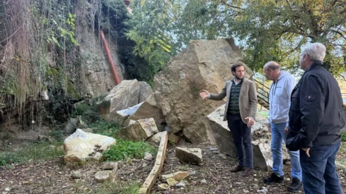 El presidente de la Diputación de Huesca, Isaac Claver, y el diputado de Obras, Álvaro Bescós, han visitado Puente de Montañana junto al alcalde, Jorge Bordes, para conocer sobre el terreno los daños provocados por el desprendimiento de varias grandes rocas en una ladera del parque fluvial, que se produjo hace algo más de un año, tras un episodio de lluvias que dejó 70 litros por metro cuadrado.