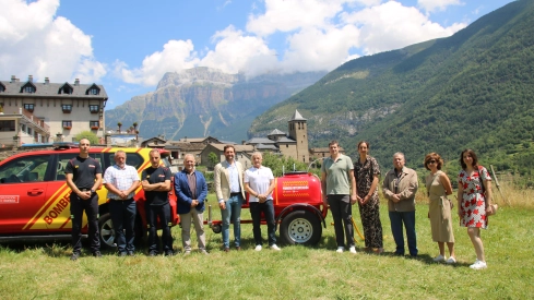 El presidente ha estado acompañado por el jefe de bomberos de la DPH, Óscar Aguarta, por el inventor del Ecofire, César Sallén y por el alcalde de Torla, Jesús Lardiés, quien ha aplaudido la iniciativa “porque nos sentimos seguros, ayer no teníamos nada con lo que hacer frente al fuego y a partir de hoy tenemos una herramienta muy útil”. Han representado a los municipios beneficiarios el alcalde de Beranuy Jesús Guitart, la concejala de San Juan de Plan, María Fillat, la alcaldesa de Hecho, Marta Lera y la alcaldesa de Agüero, María Pilar Viejo.