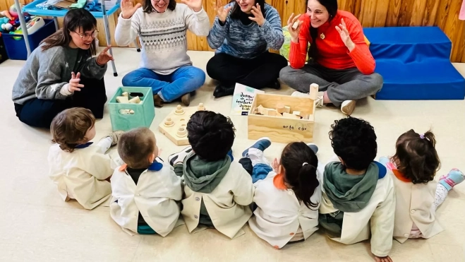 Artecor Monegros, taller artesanal de madera con sede en Alberuela de Tubo, elabora desde hace cuatro años productos diseñados y fabricados por personas con discapacidad intelectual. En esta ocasión, el colectivo ha trasladado por primera vez a una escuela infantil su propuesta de experimentación con juguetes didácticos de madera creados por sus integrantes.