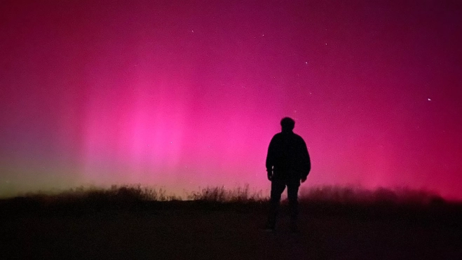 En estas horas se avistan auroras en grandes áreas del hemisferio norte y ya se han apreciado en lugares como Andalucía Levante, con manifestaciones cromáticas distintas. Aunque se aducía que no había grandes probabilidades en España, son visibles desde atalayas naturales o humanas distintas, como es el caso del Castillo de Montearagón.