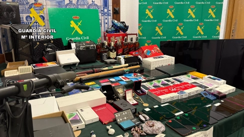 En los registros se localizaron múltiples dispositivos electrónicos utilizados para las estafas, así como numerosos teléfonos móviles de alta gama dispuestos para su venta. Además, se hallaron sustancias estupefacientes que estaban destinadas a su introducción en centros penitenciarios, armas ilegales y material y joyas obtenidas con el dinero obtenido en las estafas.