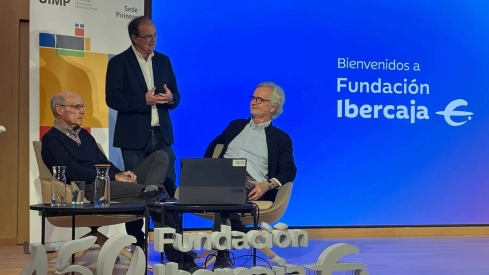 El salón de actos de la Fundación Ibercaja Huesca ha acogido nueva sesión del ciclo Conversaciones de invierno, organizada por la UIMP-Pirineos, en la que Rafael Bengoa y Esteban de Manuel Keenoy han analizado el presente y futuro del SNS bajo el título Hacia dónde dirigir el Sistema Nacional de Salud. El acto ha sido presentado por el director de la institución académica, Alfredo Serreta.