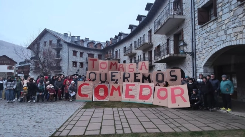 Durante la concentración, los asistentes enarbolaron pancartas con el lema "Tomasa queremos comedor". Dejaron claro que la lucha no termina aquí. Exigen que se garantice la continuidad de un servicio público esencial para la conciliación familiar. Además, reclaman que la administración detalle y garantice por escrito "los recursos prometidos", como la doble adscripción de Benasque y Celer con su correspondiente transporte, la flexibilidad en el cupo de horas del profesorado y la oferta de optativas.
