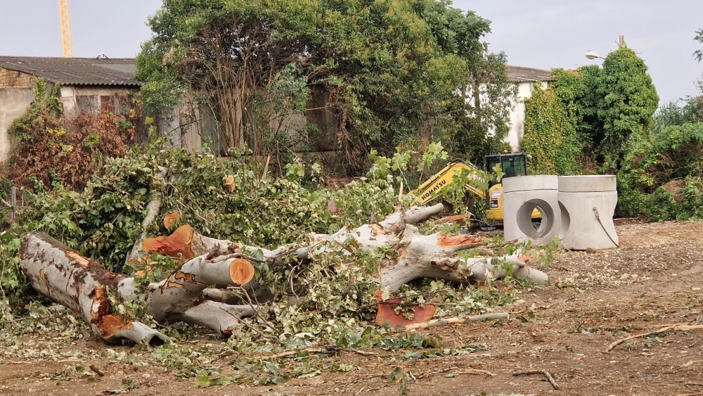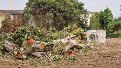 La Federación de Barrios de Huesca ha expresado su total desacuerdo con la tala de árboles que se está llevando a cabo en la ciudad con motivo de las obras de acceso al polígono de Las Harineras.