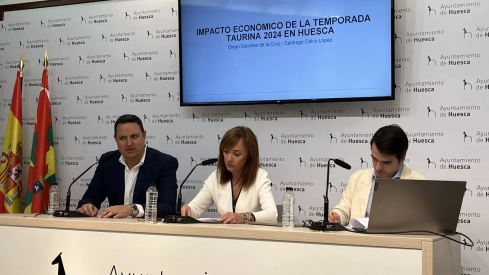 La empresa Tauroemoción, encargada de organizar un año más la Feria Taurina de la Albahaca, ha sacado a la luz un estudio para conocer el impacto económico que tuvo la última feria taurina. Este miércoles, en una rueda de prensa celebrada en el Ayuntamiento de Huesca, el presidente de la empresa, Alberto García, acompañado por el economista Diego Sánchez de la Cruz, han detallado que la Feria de 2024 tuvo un impacto económico de casi 14 millones de euros gracias a los 38.000 espectadores que asistieron. Gemma Allué, concejala delegada de la Plaza de Toros del Área de Turismo, Fiestas, Comercio y Hostelería, ha celebrado esta iniciativa de Tauroemoción porque "demuestra el compromiso que tiene".