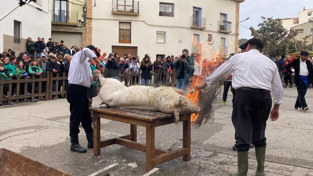 Albelda ha recreado este domingo la matacía tradicional en la 36 edición de la Festa del Tossino, que ha atraído a unas cinco mil personas para participar en una jornada que relaciona el nombre de la localidad literana con mantener viva la tradición y con una gran organización para que todos los vecinos y visitantes disfruten.