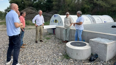 Las obras de construcción de la nueva depuradora de Labuerda han concluido y la instalación entrará en funcionamiento en cuanto se complete la conexión eléctrica. El director del Instituto Aragonés del Agua, Luis Estaún, ha visitado esta nueva estación, cuyos trabajos han sido financiados íntegramente por el IAA con una subvención de 749.000 euros, concedida en julio de 2021 dentro de la convocatoria de ayudas para la depuración del Pirineo 2021-2025.