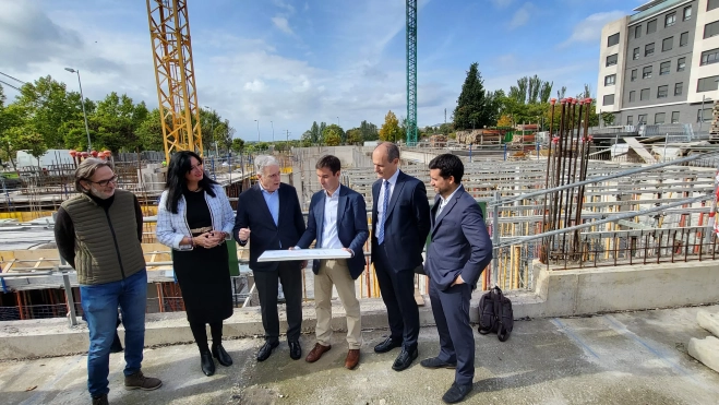 Octavio López, ha visitado este martes con la alcaldesa de Huesca, Lorena Orduna, la promoción de 90 viviendas protegidas de Aragón (VPA) de alquiler con opción a compra, que está construyendo la promotora Saraqusta Estate, del Grupo Brial, en un solar entre las calles Zaragoza y Calatayud, y que concluirán en unos 20 meses.