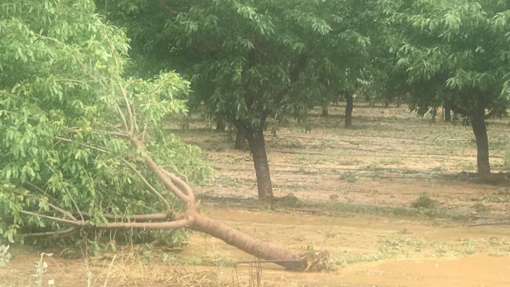 Las lluvias han sido muy importantes en el Pirineo y en la zona de Los Monegros, el Bajo Cinca y La Hoya. En la zona sur de la provincia, el granizo ha causado importantes daños en el campo y en algunas localidades, que todavía se deben evaluar, y la gran cantidad de agua caída ha provocado desbordamientos en Frula y también un desprendimiento de piedra y tierra que ha cortado unas dos horas la N-211 en el término de Torrente de Cinca.