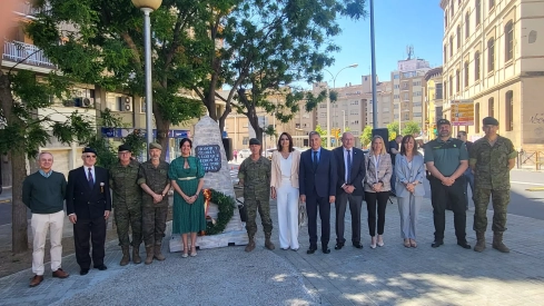 La Unidad de Honores con distintas secciones del Regimiento de Transmisiones, de la División Castillejos y de la Guardia Civil ha protagonizado esta mañana el Acto de Izado de la Bandera y Homenaje a los Caídos por España en la Plaza Unidad Nacional, dentro de la programación del Día de las Fuerzas Armadas y la Guardia Civil que ha estado presidido por el general de División José Manuel Vivas Urieta, jefe del Acuartelamiento Sancho Ramírez, y autoridades encabezadas por la alcaldesa, Lorena Orduna, la vicepresidenta de la Diputación Provincial, Celsa Rufas, concejales, el teniente coronel de la Benemérita, José Enrique Cordobés, y mandos militares.