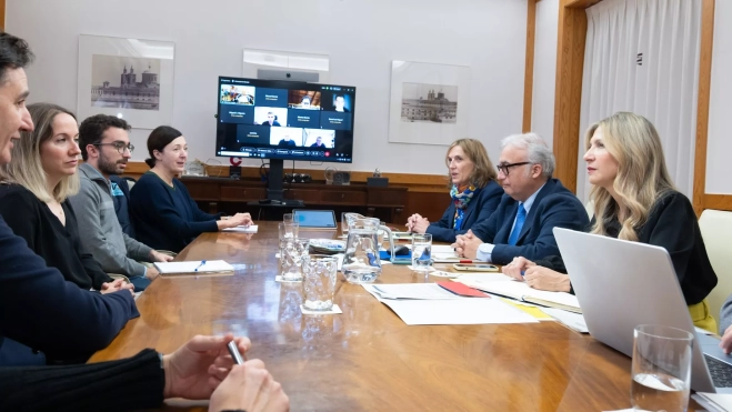 La vicepresidenta del Gobierno de Aragón y consejera de Presidencia, Economía y Justicia, Mar Vaquero, el consejero de Agricultura, Ganadería y Alimentación, Javier Rincón, han mantenido una reunión de trabajo con los principales representantes empresariales del sector porcino aragonés tras la confirmación este pasado viernes de dos casos de peste porcina africana en jabalíes silvestres en Cataluña, cuestión que ha obligado al Ministerio de Agricultura, Pesca y Alimentación a tomar medidas de ámbito nacional.