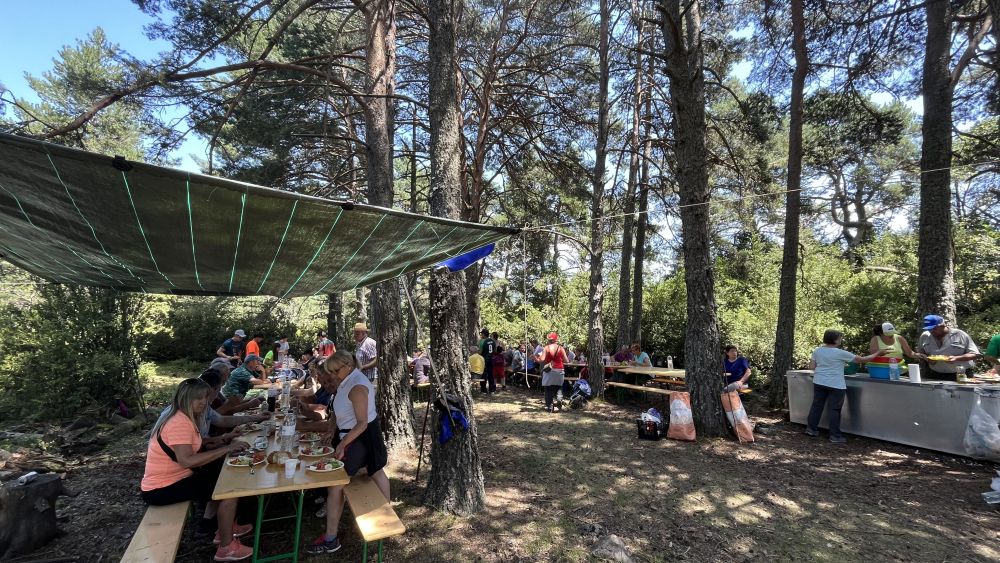 Tras la ceremonia, un total de 73 personas han participado en una comida popular junto a la ermita en un día caluroso pero inmejorable por el agradable ambiente que se vive cada año en esta fecha. De menú: ensalada variada y carne.