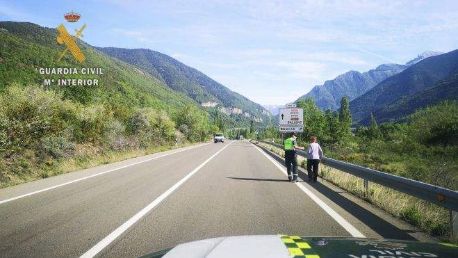 Como explica la Guardia Civil, la patrulla observó la mañana del sábado 6 de mayo a una mujer de avanzada edad que caminaba ayudada por un bastón por el arcén de la carretera. Los agentes se dirigieron a ella y le preguntaron dónde se dirigía, pero vieron que daba muestras de encontrarse desorientada y que no sabía indicar su domicilio concreto. Sí comunicó que era vecina de Biescas, por lo que los agentes le ofrecieron la posibilidad de trasladarla en el vehículo oficial, evitando que continuara caminando por la vía, con evidente riesgo para su seguridad.
