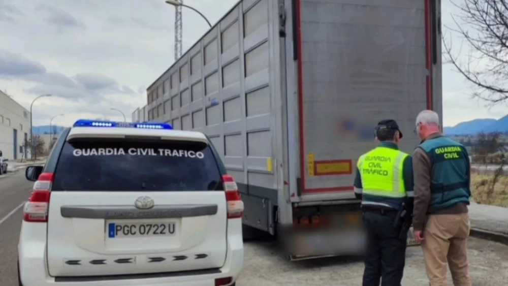 El 7 de febrero, una patrulla del Destacamento de Tráfico de la Guardia Civil de Jaca inspeccionó un vehículo articulado de transporte de animales vivos mientras realizaba en el término de Villanúa un control preventivo de inspección técnica de vehículos y del cumplimiento de los tiempos de conducción y descanso de vehículos dedicados al transporte de mercancías y pasajeros.