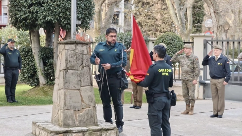 La Comandancia de la Guardia Civil en Huesca ha participado en el solemne acto de izado de bandera y posterior homenaje a los que dieron su vida por España que se celebra el último viernes de cada mes en la Subdelegación de Defensa en Huesca.