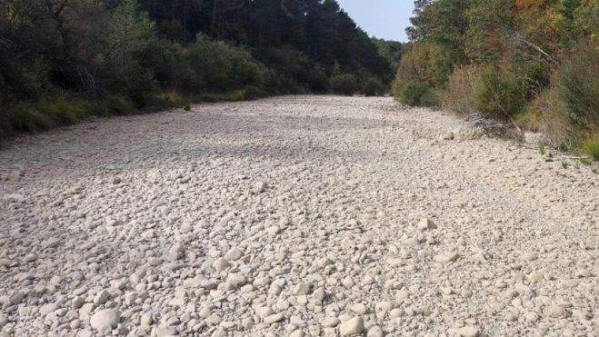 El lugareño de Escartín ha tomado su objetivo y ha enfocado el cauce del Guarga, el nacido en Cuello Serrablo de Laguarta, en la conjunción de los barrancos de Chillué y Raichuela de la Sierra de Galardón, antes de llegar al puerto en dirección a Boltaña. El Guarga es más que un río. Es la unión de la Guarguera, y desembocaba en el embalse de Javierrelatre, en el río Gállego, junto a Caldearenas. Pero, antes de completar su función, tendrá que llover mucho, porque, a día de hoy, el Guarga es la reminiscencia fluvial y el anhelo de agua. Las piedras hablan, al aire, en demanda de las precipitaciones que les alivien la sequedad radical. Que les devuelvan a la vida.