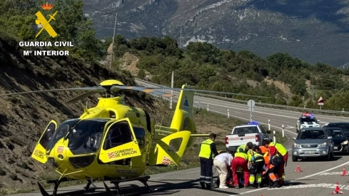 El siniestro, que se ha producido en torno a las 16.30 horas en el kilómetro 423,700, ha implicado a dos vehículos y ha requerido la intervención de los servicios de emergencias. La víctima ha sido trasladada en helicóptero medicalizado del 112 al Hospital Clínico de Zaragoza.