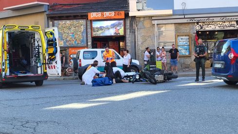 Una persona ha resultado herida en un accidente de tráfico este martes en el casco urbano de Aínsa, en una colisión de un coche y una moto.