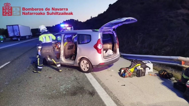 El accidente, registrado en el punto kilométrico 58 de la Autopista de Navarra, ha consistido en una colisión por alcance entre un coche y un camión. Como consecuencia del impacto, los tres ocupantes del turismo han quedado atrapados en el interior del vehículo.