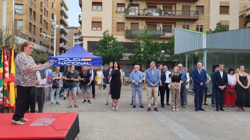 La alcaldesa de Huesca, Lorena Orduna, ha presidido el acto que ha contado con la participación de representantes de las instituciones aragonesa y el subdelegado del Gobierno, Carlos Campo, además de representantes de la Guardia Civil, Policía Nacional y local y del Ejército, y ha contado con el acompañamiento musical de la soprano María Ángel Leo, acompañada del Cuarteto Bolskan.