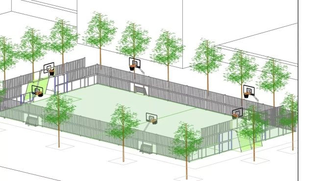 El nuevo equipamiento estará diseñado para la práctica de fútbol sala, balonmano y baloncesto, incorporando porterías reglamentarias, canastas a altura oficial y el marcaje correspondiente a cada disciplina. Además, contará con un cerramiento perimetral que reforzará la seguridad de los usuarios y delimitará el espacio de juego.