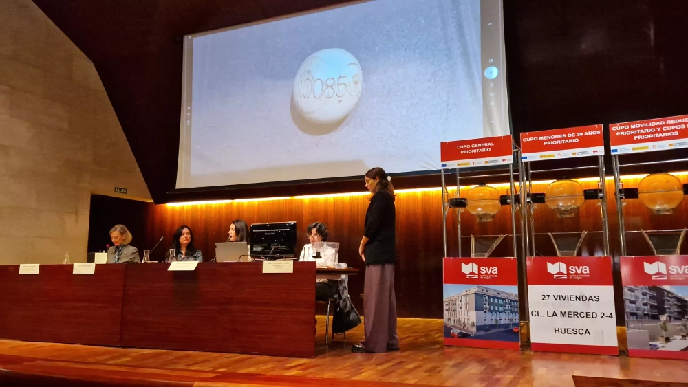 Huesca ha celebrado este jueves, 30 de octubre, el sorteo público del orden de adjudicación de las primeras 27 viviendas protegidas de la fase 1 del sector La Merced, tras un prolongado período sin iniciativas similares en la ciudad. La ceremonia ha tenido lugar en el salón de actos de la Diputación oscense y ha contado con la presencia de la alcaldesa, Lorena Orduna, el concejal de Urbanismo, Iván Rodríguez, la directora general de Vivienda del Gobierno de Aragón, María Pía Canals Lardiés, y la directora gerente de Suelo y Vivienda de Aragón, Inmaculada Aured, así como la notaria María Soterraña Rincón Hernández.