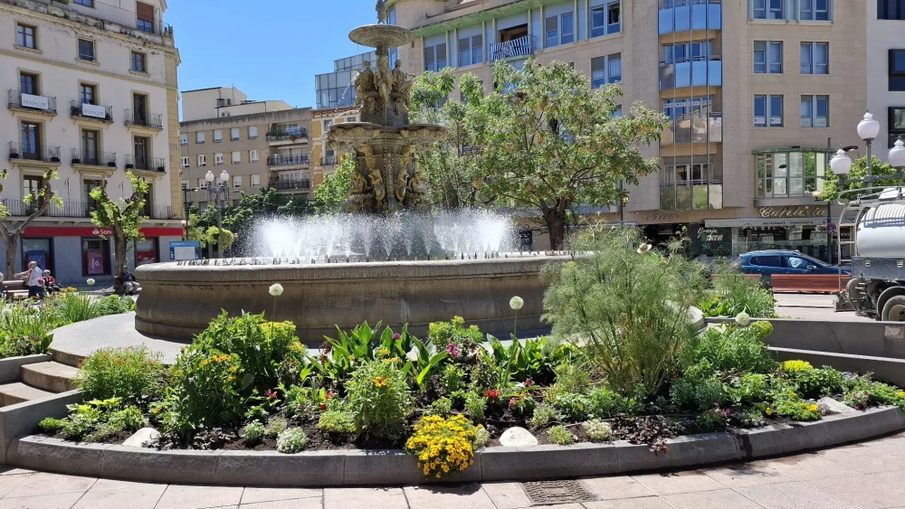 Ya se han plantado en espacios emblemáticos como el monumento a los Caídos, el estanque central y los accesos al Parque Miguel Servet. Este viernes le tocaba el turno a un enclave tan representativo como es el parterre de la fuente de las Musas en la plaza de Navarra, y en próximos días se actuará en el parterre de la Biblioteca Pública de la plaza Luis Buñuel, el monumento de La Paz, la fuente del 8 de marzo, María Auxiliadora, en dos parterres frente al Colegio Pío XII o la glorieta de la calle Gibraltar.