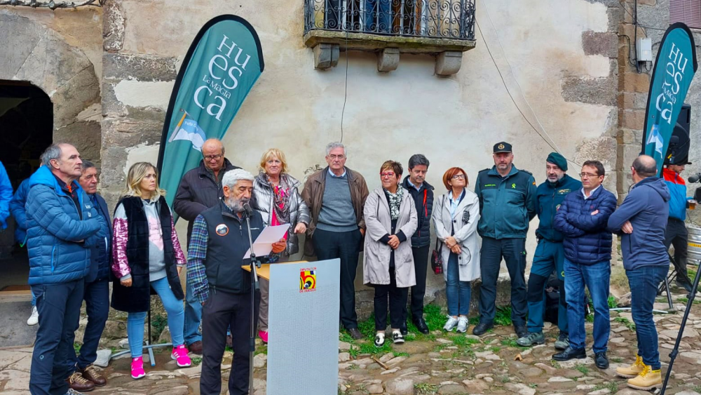 Casa Lardiés, el nuevo refugio de montaña en Nocito (municipio de Nueno), ha sido inaugurada esta mañana por iniciativa de Peña Guara y con el soporte financiero de instituciones como el Gobierno de Aragón, la Diputación Provincial de Huesca y el Ayuntamiento de Huesca, quienes precisamente han emitido tres notas diferentes que se suman a la de la asociación promotora de las instalaciones. Junto a Manolo Bara, presidente de Peña Guara, se han congregado el consejero Joaquín Olona, la vicepresidenta de la DPH Elisa Sancho y los alcaldes de Nueno (Guillermo Palacín) y Huesca (Luis Felipe).