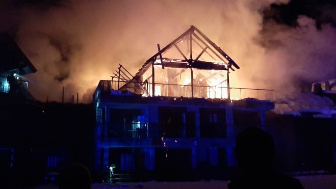 Un incendio declarado en la tarde de este domingo en la urbanización Argualas de Panticosa ha arrasado un edificio de cinco apartamentos, sin causar heridos, y ha llevado a desalojar a cuarenta personas.
