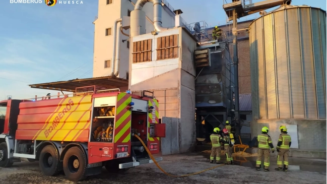 Dos dotaciones del parque de bomberos de la DPH de Barbastro han extinguido en la mañana de este miércoles un incendio que se había producido en un silo de grano en la estación de tren de Selgua.