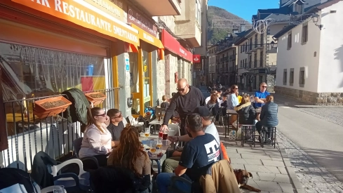 Terrazas al sol llenas incluso con clientes en manga corta. Es la imagen estos días de localidades como Biescas donde los termómetros sobrepasan los 10 grados y se viven días que recuerdan a primavera. Es la inversión térmica que se vive en la provincia de Huesca, con temperaturas más altas en zonas elevadas que en lugares situados a menor altitud.