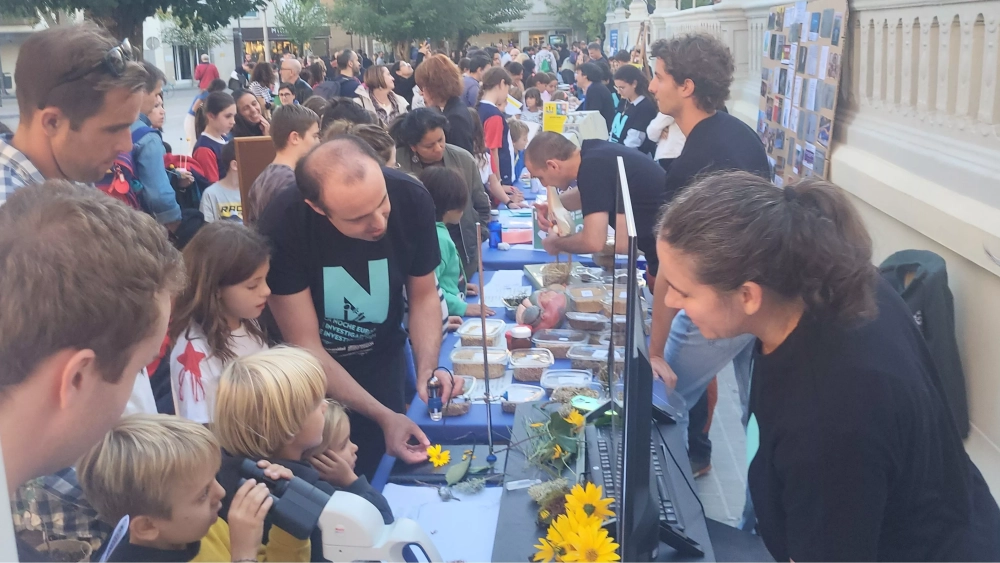 La ciencia ha conquistado este viernes Huesca, con múltiples propuestas en la plaza de Navarra, que han animado a pequeños y mayores a experimentar, aprender y sorprenderse. La Noche Europea de los Investigador@s ha demostrado que cuando sale a la calle la ciencia es capaz de atraer y despertar vocaciones. Además, se han desarrollado paseos científicos y monólogos en Bendita Ruina.